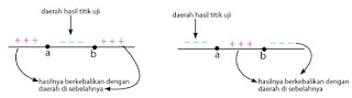 Hasil dari titik uji menunjukkan nilai yang mewakili keseluruhan daerah tersebut. Untuk daerah yang lain, biasanya akan bergantian. Maksudnya, jika hasil titik uji menghasilkan daerah positif maka daerah sebelahnya adalah kebalikannya. Begitu juga dengan kondisi sebaliknya.